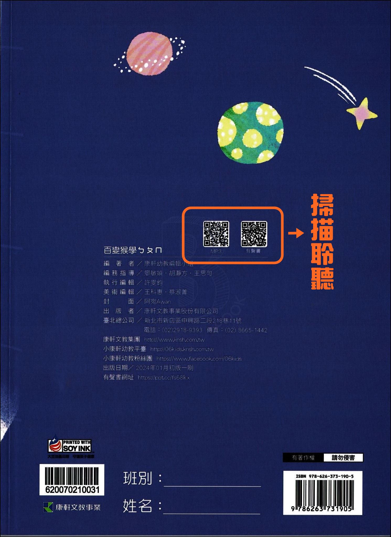 📢百變猴ㄅㄆㄇ讀本背面掃描QR Code 即可聽(如圖示)