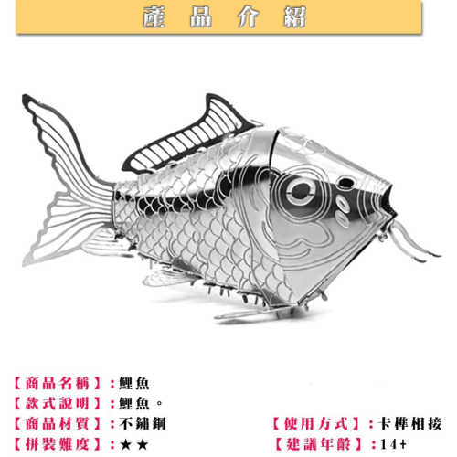 鋼鐵火星人益智玩具★ 鯉魚 ★拼酷★MU藝模★3D立體金屬拼圖★DIY金屬模型