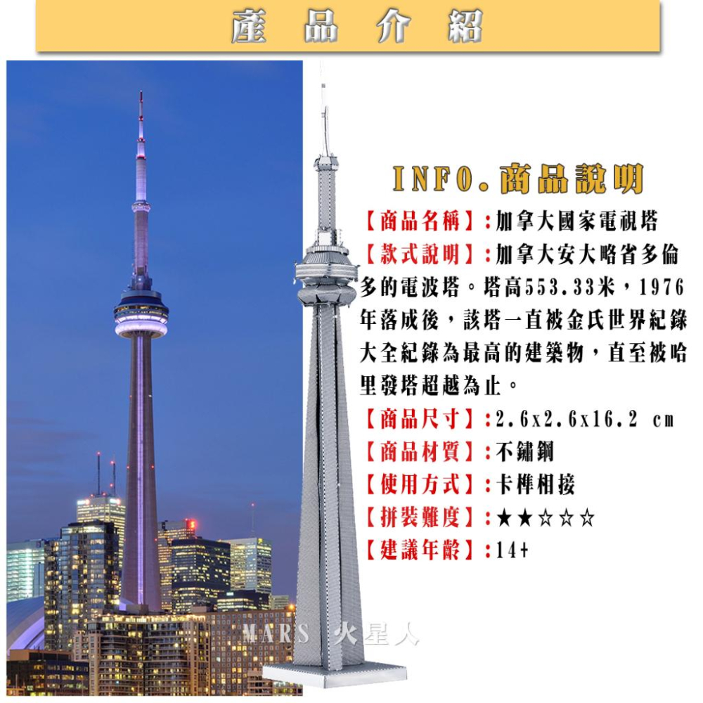 鋼鐵火星人益智玩具★ 加拿大國家電視塔 ★拼酷★MU藝模★3D立體金屬拼圖★DIY金屬模型