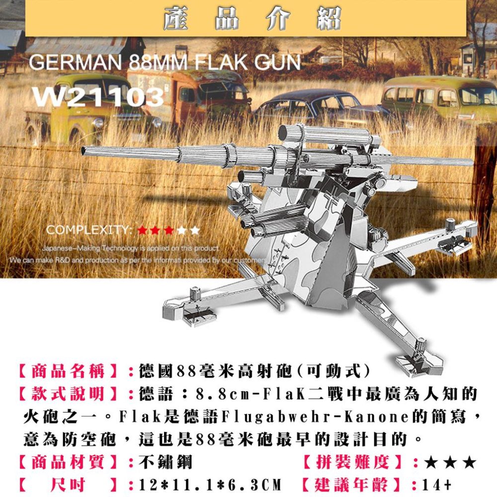 鋼鐵火星人益智玩具★ 德國88毫米高射炮 ★拼酷★MU藝模★3D立體金屬拼圖★DIY金屬模型