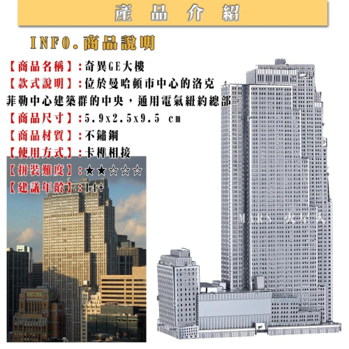 鋼鐵火星人益智玩具★ 奇異GE大樓 ★拼酷★MU藝模★3D立體金屬拼圖★DIY金屬模型