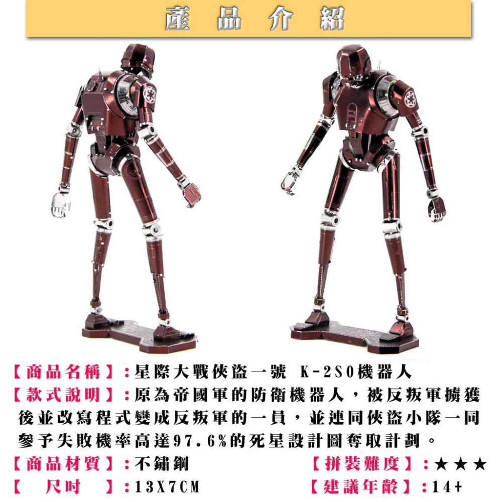 鋼鐵火星人益智玩具★星際大戰-K-2SO機器人 ★拼酷★MU藝模★3D立體金屬拼圖★DIY金屬模型★蝕刻片
