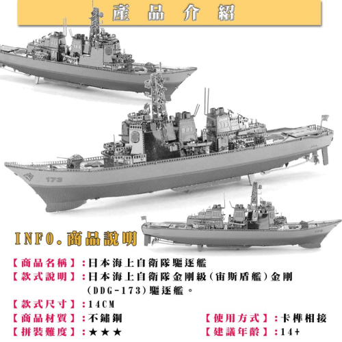 ★鋼鐵火星人益智玩具★ 日本173驅逐艦★拼酷★MU藝模★3D立體金屬拼圖★DIY金屬模型★蝕刻片