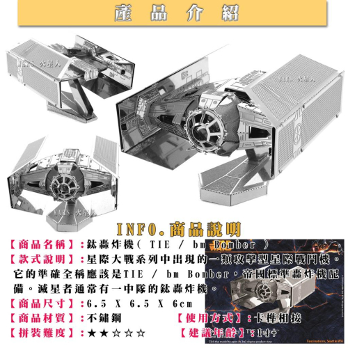 【 材 質 】銀色不鏽鋼或金色黃銅 【商品介紹】包裝內為數片不鏽鋼或黃銅等金屬片,您只需要一把小剪刀,依照說明書編號,將雷射切割鋼板零件依編號剪下後.用鑷子或小尖嘴鉗將卡榫相扣或旋轉方式一一組裝(賣場圖片上都有標示尺寸.材質.難度...等等資訊喔~!)。 由於slot-and-tab設計精妙,其組裝方式不需要特殊工具,緊固件,或膠水就可以構建金屬3D模型作品。所需要的是您的細心與耐心! 目前有各種款式風格涵蓋各種各樣的舉世聞名的工程建築物.交通工具.軍事.動漫影劇.動植物.樂器....等等數百種各式商品。根據模型的複雜性,完成時間約30分鐘到幾個小時。 【備 註】 1.由於個人電腦螢幕顯示設定不同,產品顯示圖片多少會有色差,實際顏色請以收到貨品為準! 2.下標前請先詢問是否有現貨。 3.商品收到7天內可退換貨,退貨需保持商品包裝完整,非商品瑕疵,一經拆封恕不退貨。 4.建議年齡14+ 5.宅配上班日有配送,星期例假日不收件,郵局例假日不收送,超商寄出後約2天到達(以超商簡訊為準) 6.商品皆是在台現貨,下單後2個工作天內寄出 #金屬拼圖 #金屬模型 #蝕刻片 #鋼鐵火星人 #3D立體金屬拼圖 #益智組裝玩具