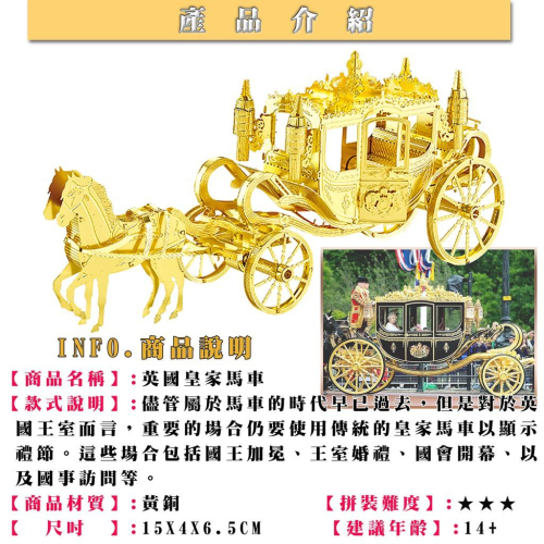 鋼鐵火星人益智玩具★英國皇家馬車 ★拼酷★MU藝模★3D立體金屬拼圖★DIY金屬模型★蝕刻片
