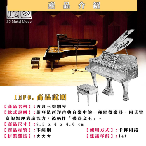 鋼鐵火星人益智玩具★三腳架鋼琴(大碼) ★拼酷★MU藝模★3D立體金屬拼圖★DIY金屬模型★蝕刻片