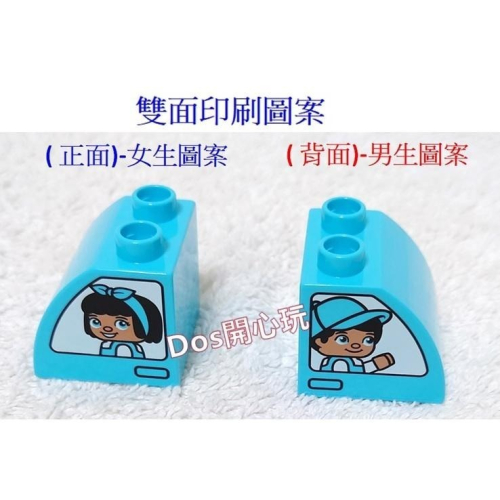 【Duplo 得寶】2X2 弧面 弧形 小朋友 中-天空藍色 印刷磚 圖案 標誌,LEGO 大顆粒