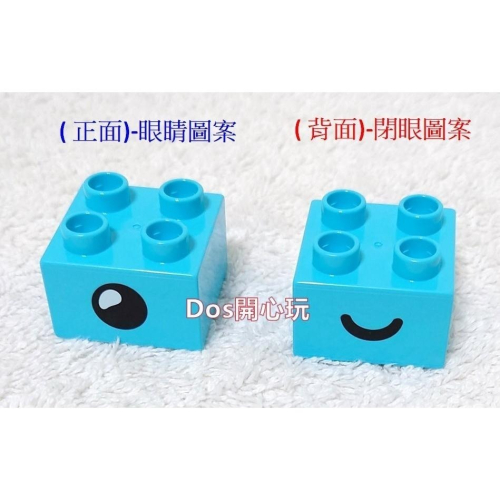 【Duplo 得寶】2X2 半圓形 眼睛 閉眼 中-天空藍色 雙面 圖案 印刷 標誌 磚,LEGO 大顆粒