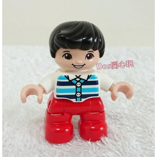 【Duplo 得寶】人偶 黑色頭髮藍色條紋紅色褲子男孩 小孩 小朋友 兒童,LEGO 大顆粒
