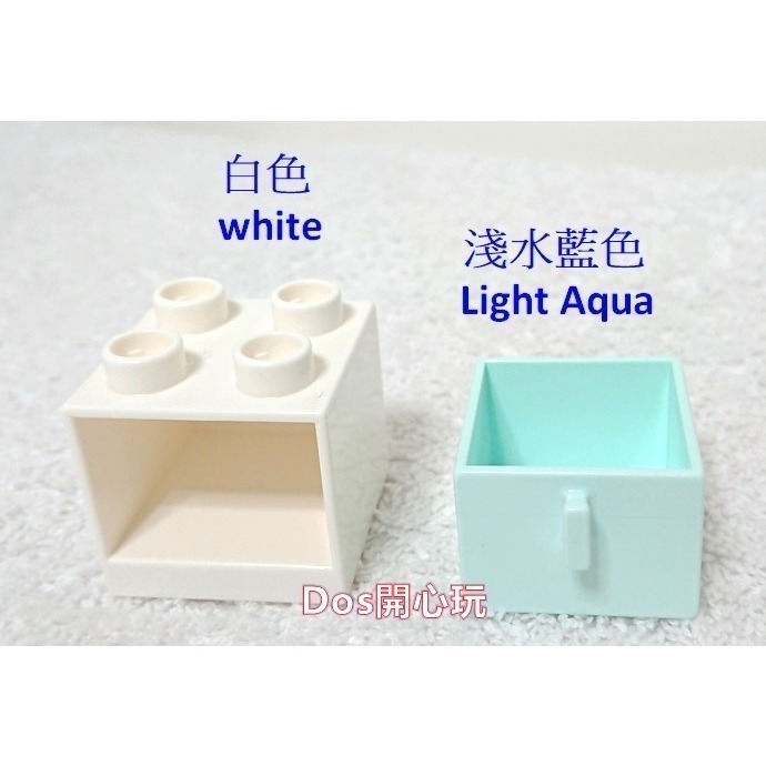 【Duplo 得寶】2x2 抽屜 櫃子(白色櫃子+淺水藍色抽屜),建築 家具 配件,LEGO 大顆粒 #Dos開心玩
