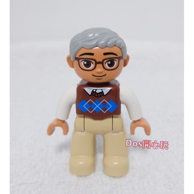 【Duplo 得寶】人偶 紅棕色菱形毛衣背心 戴眼鏡 爺爺 爸爸,LEGO 大顆粒