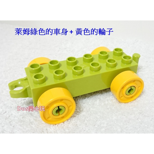 【Duplo 得寶】2x6 汽車 列車 底座 手動版 (萊姆綠色車身-黃色輪子),LEGO 大顆粒