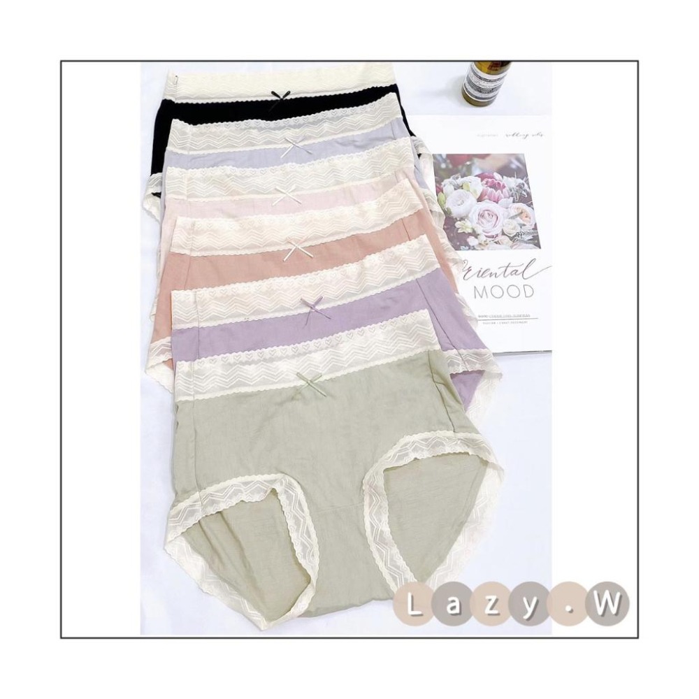 ★Lazy.W✰奶油色系蕾絲花邊蝴蝶結氧膚褲 抑菌底檔 獨立包裝 高彈舒適 高質感 蕾絲內褲 性感內褲 中高腰內褲 女生
