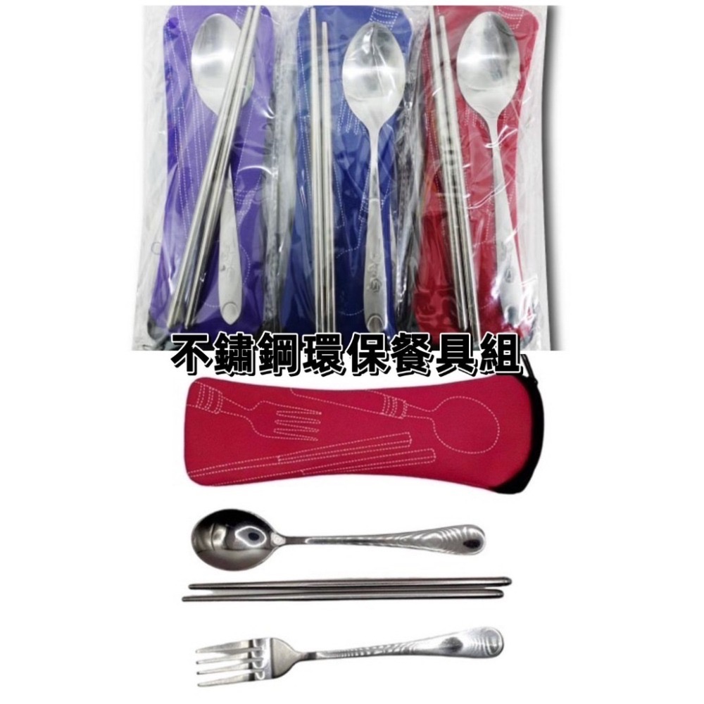 【台灣出貨】不鏽鋼環保餐具組 不鏽鋼餐具組 餐具組 環保餐具 環保餐具組 筷子 湯匙 叉子 餐具 三件套 304不鏽鋼