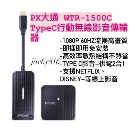 品名:PX大通 WTR-1500C TypeC行動無線影音傳輸器