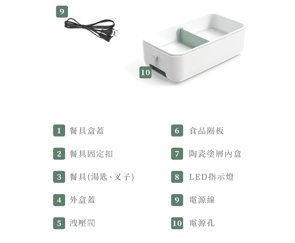 ∙一體式智能加熱便當盒,內附叉子和湯匙還有隔板,使用超方便