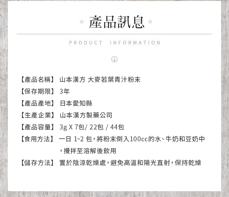 【KANPO-YAMAMOTO 山本漢方】大麥若葉粉末體驗包(3g*2包)