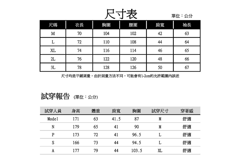尺碼:M、L、XL、2L、3L