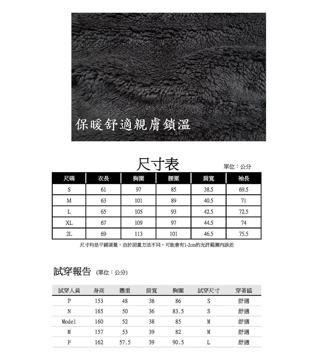 三.保暖層:細緻長毛絨内層,鎖溫保暖。