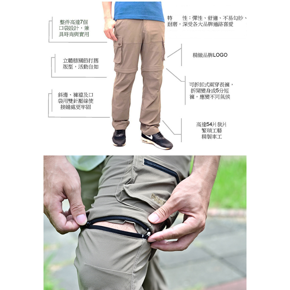 1.可拆卸式兩穿長褲,拆開變成5分短褲,應變不同氣後。
