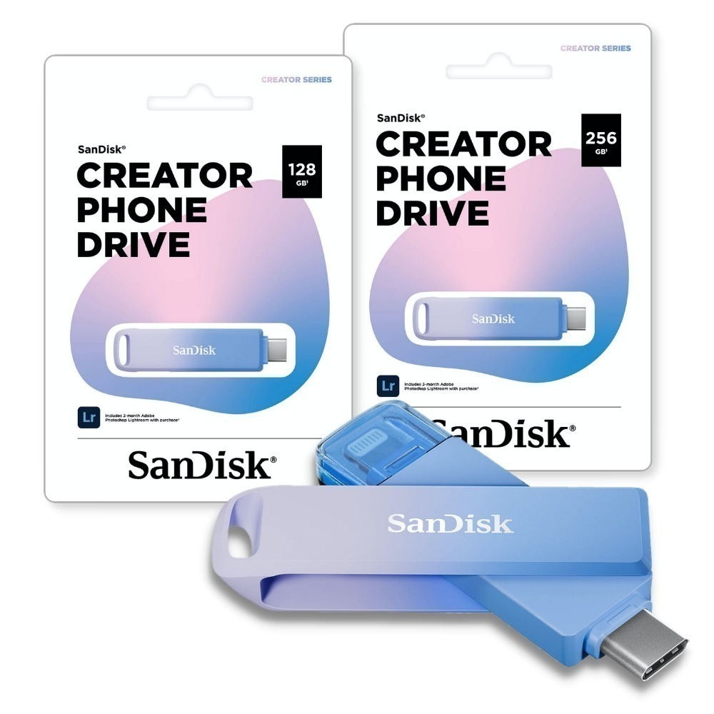 對於需處理多裝置工作流程的創作者而言,SanDisk Creator Phone Drive (屬於 SanDisk Creator 系列) 是您可靠、高速儲存和增強創造力的小巧搭檔。
