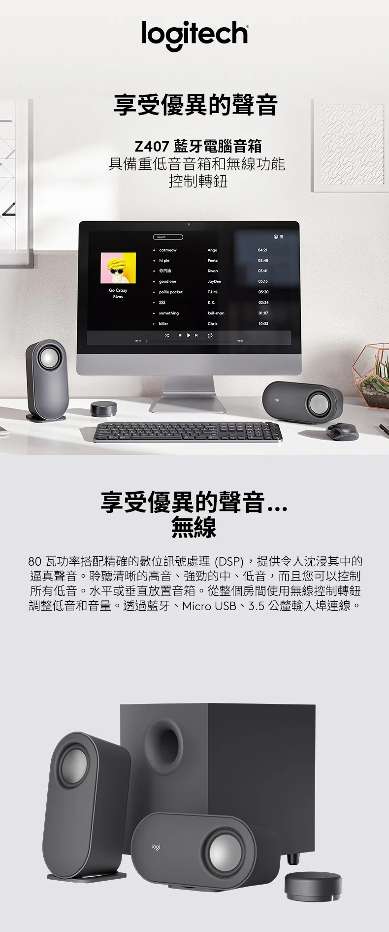 1. 2.1聲道系統:包括兩個衛星音箱和一個低音炮,提供豐富立體聲和強勁低音。