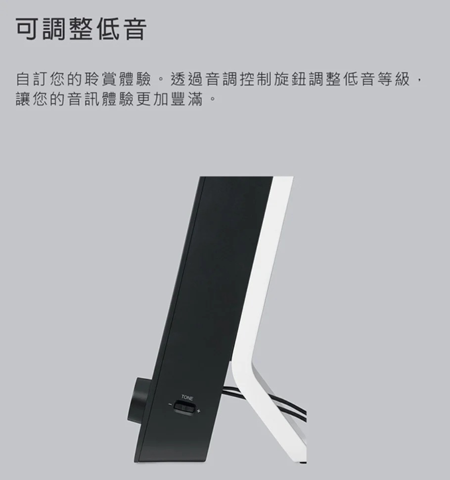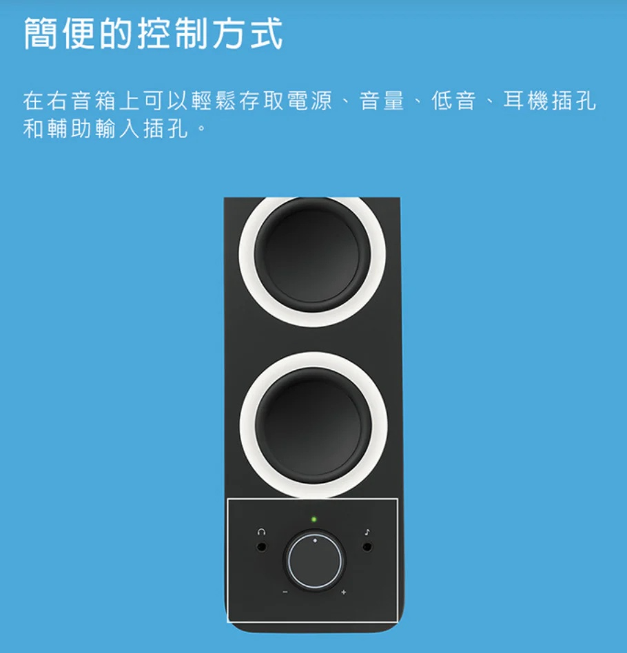 控制鍵: 右音箱上的電源、音量和音調控制鍵