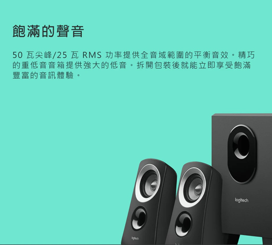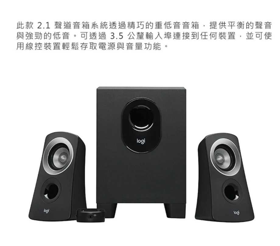 1. 2.1聲道系統:包括兩個衛星音箱和一個低音炮,提供豐富的立體聲和強勁低音。