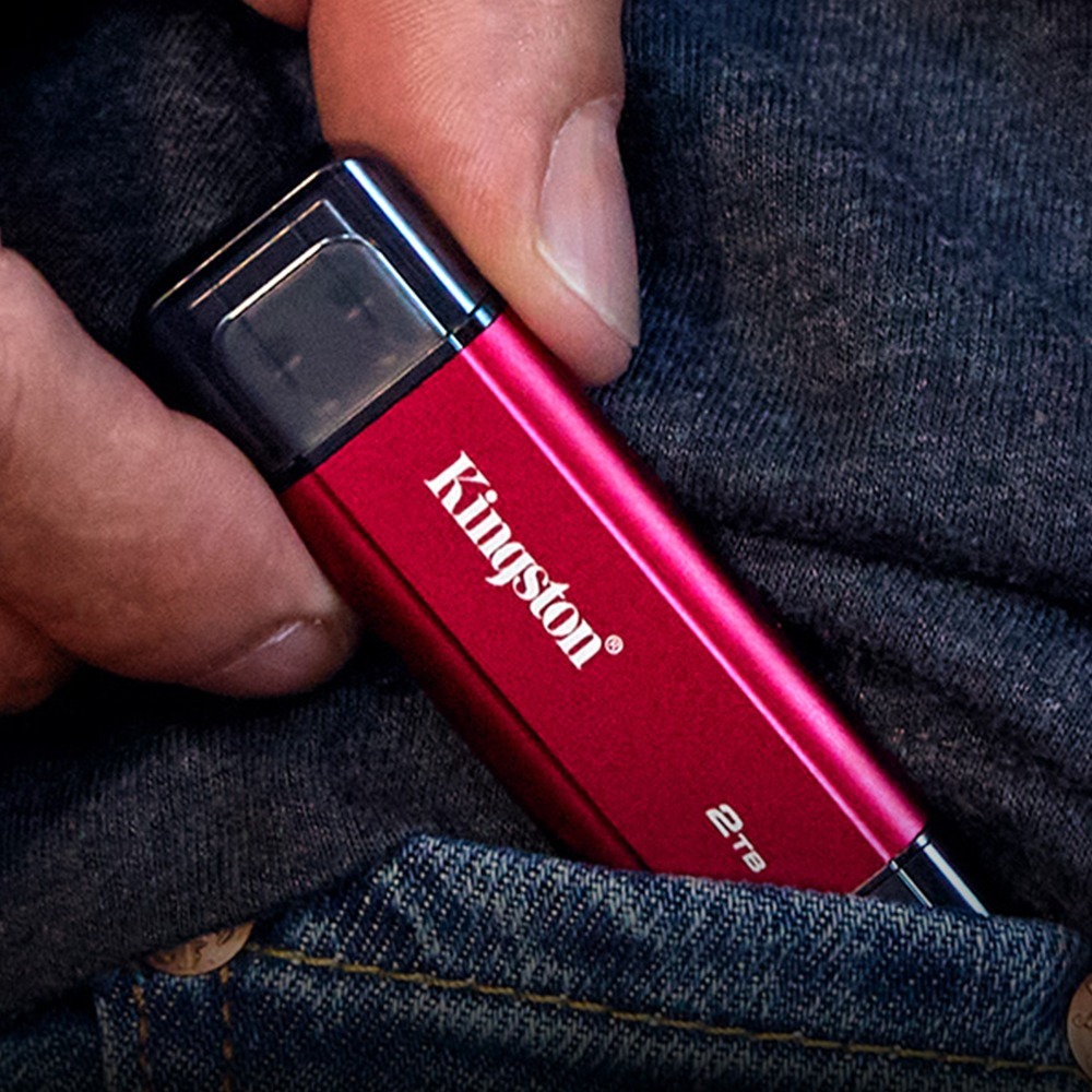 外型猶如傳統隨身碟,Kingston's 雙介面行動固態硬碟為您的 USB Type-A 和 USB-C 裝置帶來驚豔的 USB 3.2 Gen 2效能。