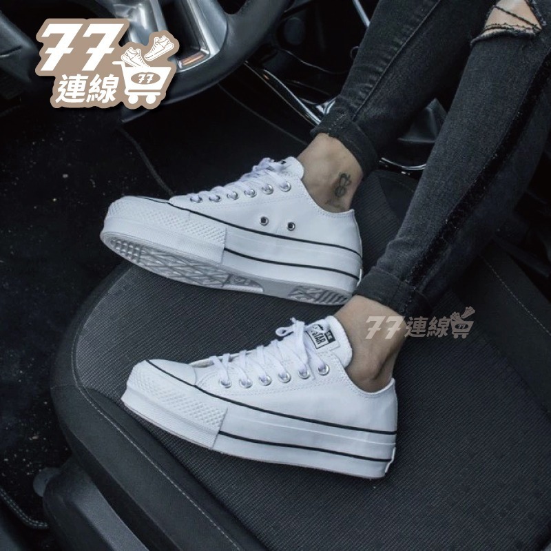 Converse All Star 厚底 低筒 增高 黑白 帆布鞋 白 黑線 560251C