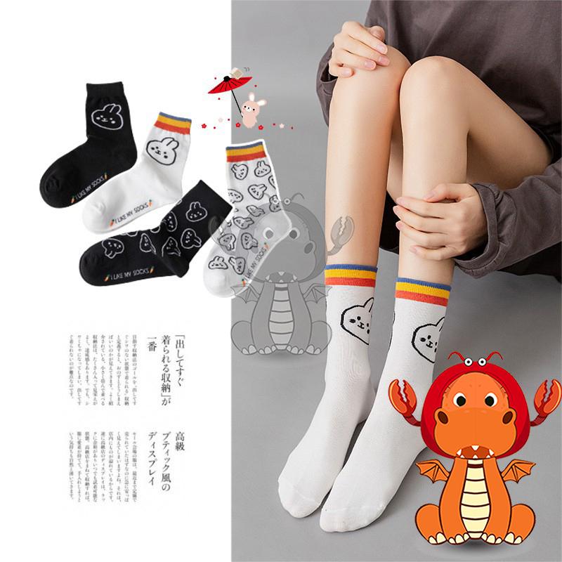 J405 爆款女士中筒襪 透氣款襪子 中筒女襪 卡通襪子 圖案可愛小兔子全棉襪子 唯龍購物
