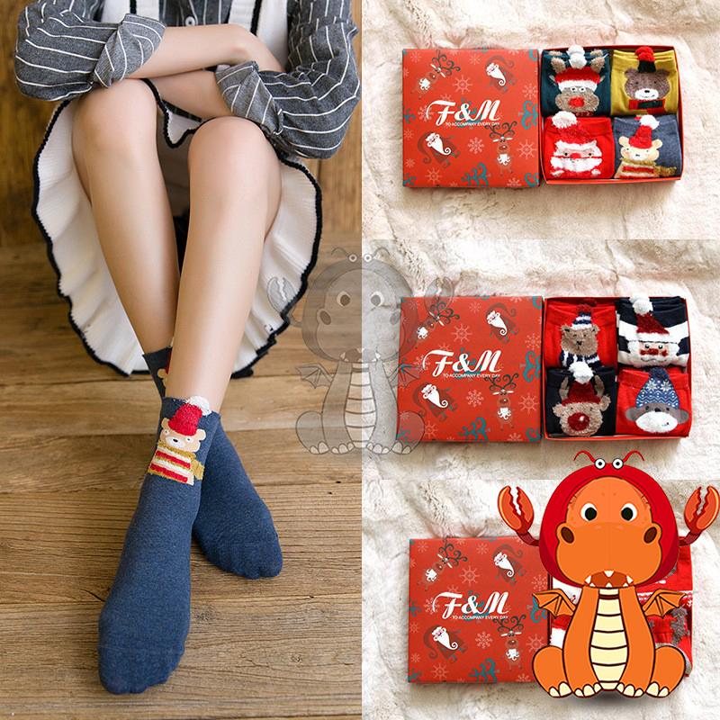 Z-055 秋冬盒裝襪子 大紅襪子 立體卡通馴鹿聖誕襪子 可愛日系女士中筒襪子 唯龍購物