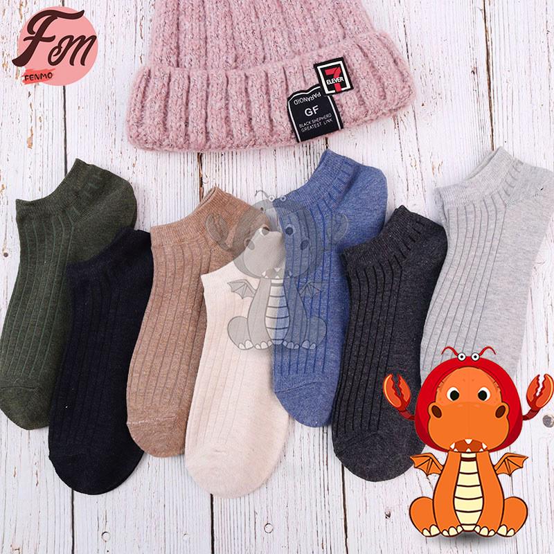 J497 秋季襪子 新款豎條襪子 全棉男士船襪 復古襪子 透氣吸汗純色短襪子 唯龍購物