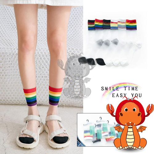 F-003 夏季薄款襪子 中筒潮襪 彩虹襪子 學院風日系襪子 玻璃絲彩色條紋女襪 唯龍購物