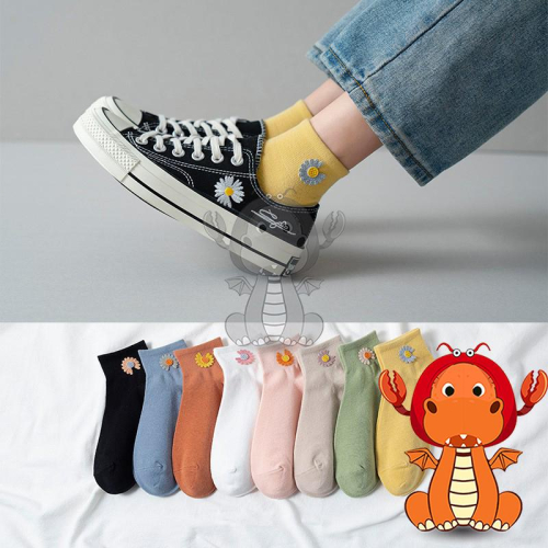 J397 夏季爆款襪子 網紅同款襪子 清新刺繡小雛菊襪子 淺口短襪 女夏天薄款襪子 純色船襪 唯龍購物
