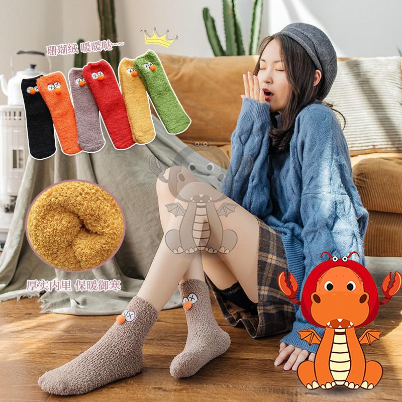 J-01 冬季珊瑚絨襪子 卡通圖案襪子 kaws街頭風芝麻街女襪 唯龍購物