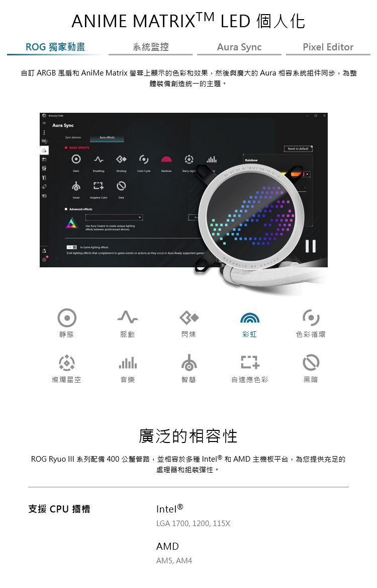 ASUS 華碩|ROG RYUO III 360 ARGB 一體式 CPU 水冷散熱器 白色