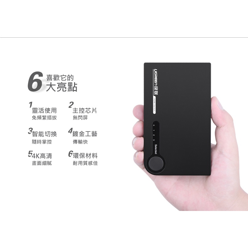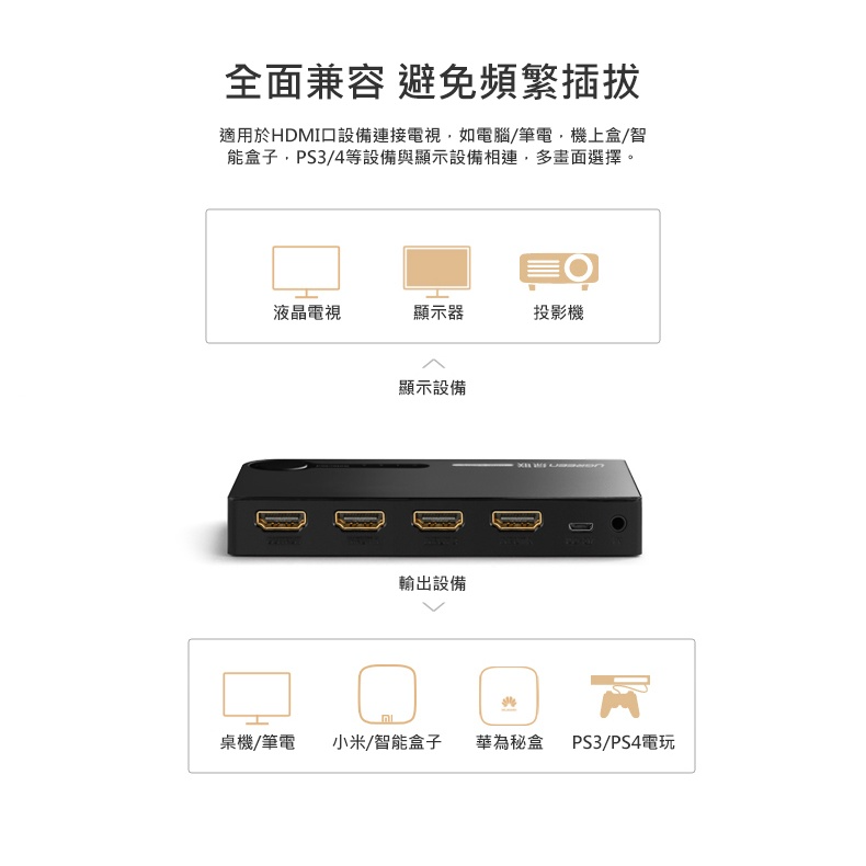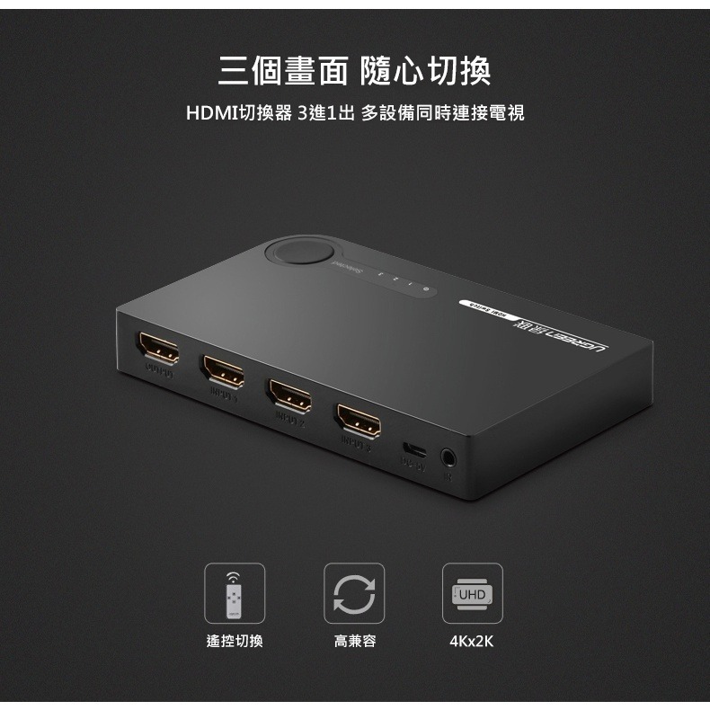 聯迅~來電更優惠 綠聯 三進一出 HDMI切換器 4K高清畫面細膩