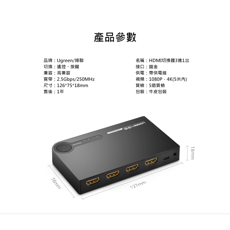 綠聯 三進一出 HDMI切換器 【商品特色】
