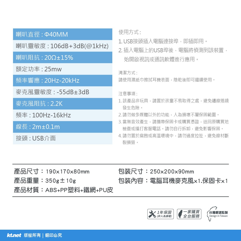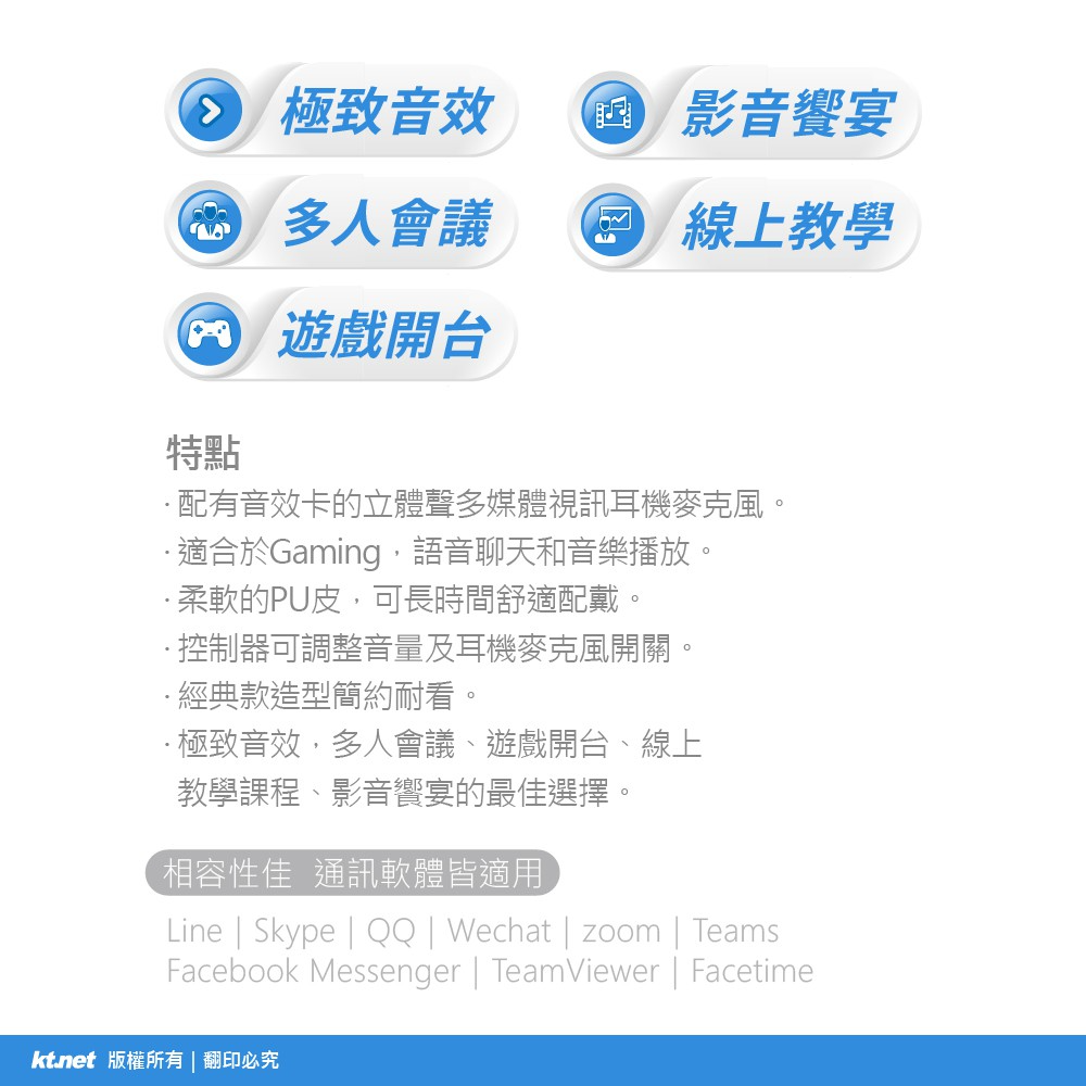 聯迅~來電更優惠 kt.net HU500 USB7.1音效電腦多媒體耳機麥克風 / 全指向性立體聲低音呈現
