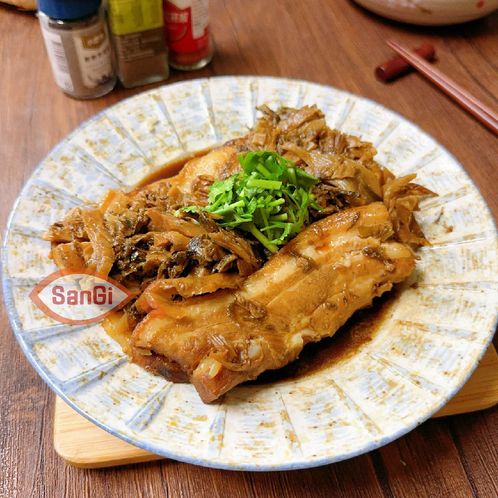 商品成分:水、梅乾菜(芥菜、鹽、苯甲酸0.6g/kg以下)、五花肉(原產地:丹麥)、醬油【水、釀造醬油(水、脫脂大豆片、小麥)、鹽、食用酒精、調味劑(L-麩酸納、5’-次黃嘌呤核苷磷酸二鈉、5’-鳥嘌呤核苷磷酸二鈉、DL-蘋果酸)、甜味劑(醋磺內酯鉀、甘草萃)、品質改良劑(無水碳酸鈉)、防腐劑(對羥基苯甲酸、蔗糖素)、醬油膏【水、釀造醬油(水、脫脂大豆片、小麥)、鹽、黏稠劑(乙醯化己二酸二澱粉、玉米糖膠)、蔗糖、調味劑(L-麩酸鈉、DL-胺基丙酸、琥珀酸二鈉、5’-次黃嘌呤核苷磷酸二鈉5’-鳥嘌呤核苷磷酸二鈉、DL-蘋果酸)、甜味劑(醋磺內酯鉀、甘草酸鈉、蔗糖素)、著色劑(焦糖色素)、品質改良劑(無水碳酸鈉、偏磷酸鈉)、防腐劑(對羥苯甲酸丁0.25gkg以下)】、冰糖、沙拉油、二砂糖、鹽、蔥、蔬菜調味粉(L-麩酸鈉、胺基乙酸、琥珀酸二鈉、L-天門冬酸鈉、5’-次黃嘌呤核苷磷酸二鈉、5’-鳥嘌呤核苷磷酸二鈉、DL-胺基丙酸、食鹽、香菇抽出物、糊清、蔗糖、香料)、薑、蒜、焦糖色素、辣椒、八角、五香粉