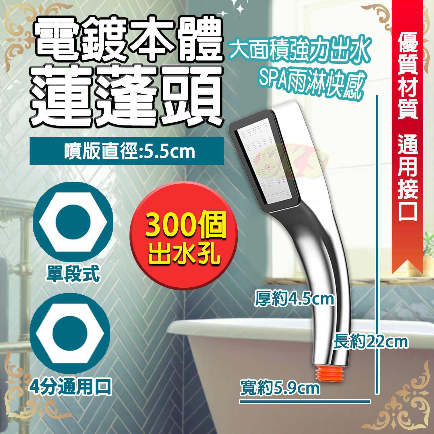 🎨300孔電鍍本體 單支不銹鋼蓮蓬頭/組合