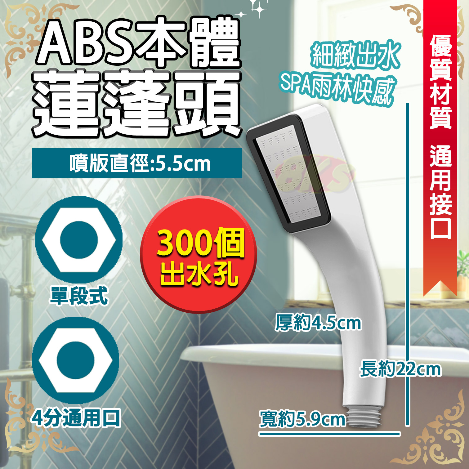 🥽300孔ABS本體 單支不鏽鋼蓮蓬頭/組合