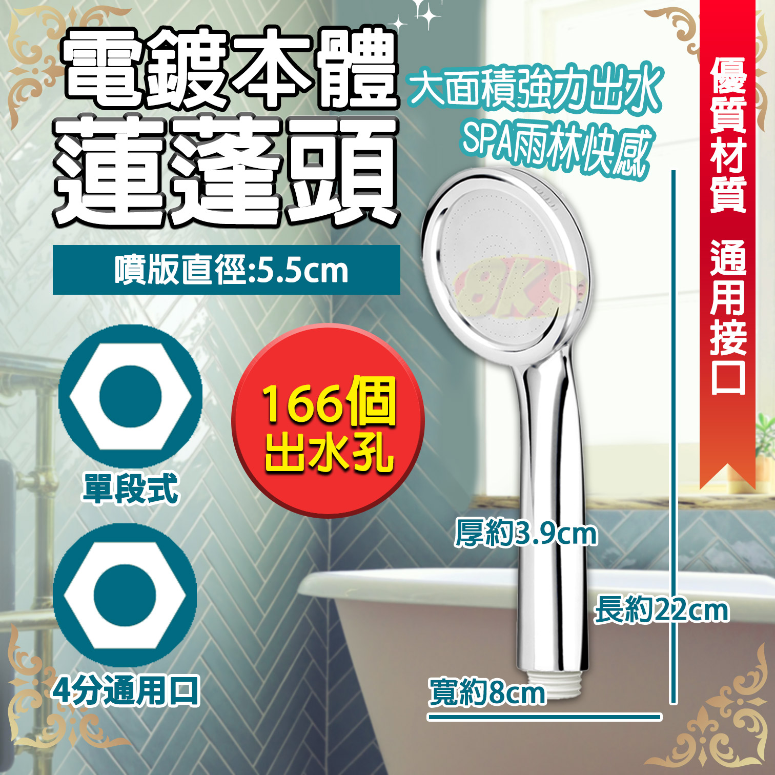 🦺166孔電鍍本體 單支不鏽鋼蓮蓬頭/組合