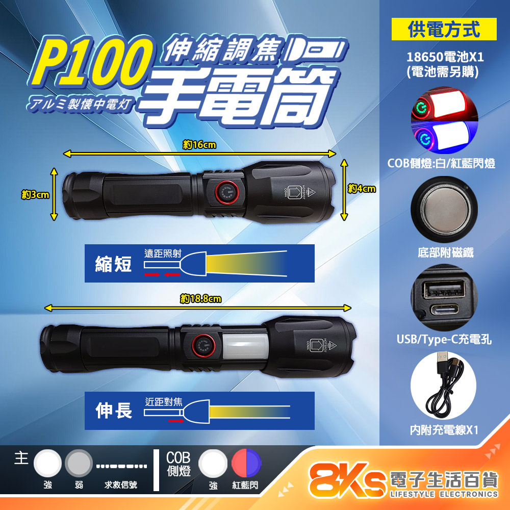 P100 LED超強光鋁合金手電筒