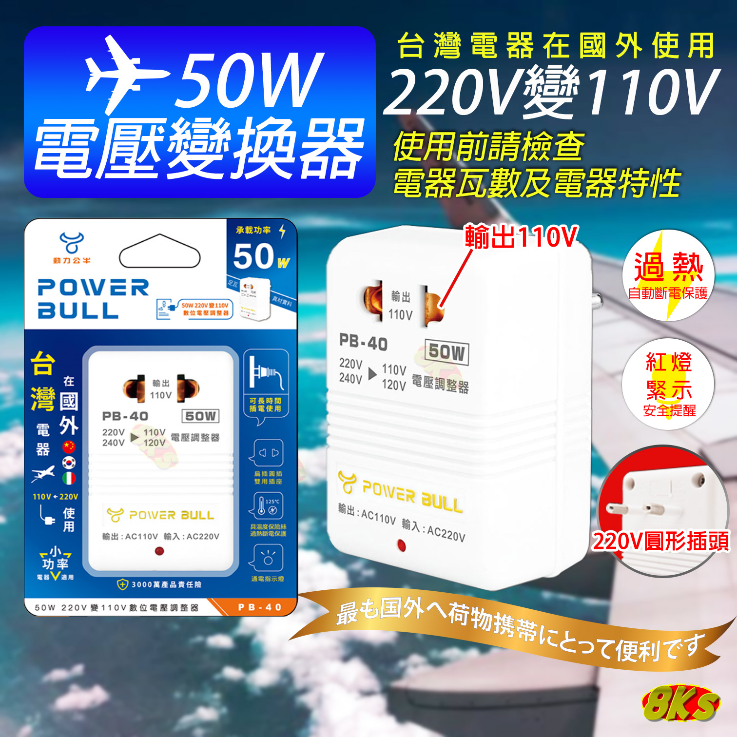 110V變220V 50W(過熱斷電) (請使用於安全負載40W以下)