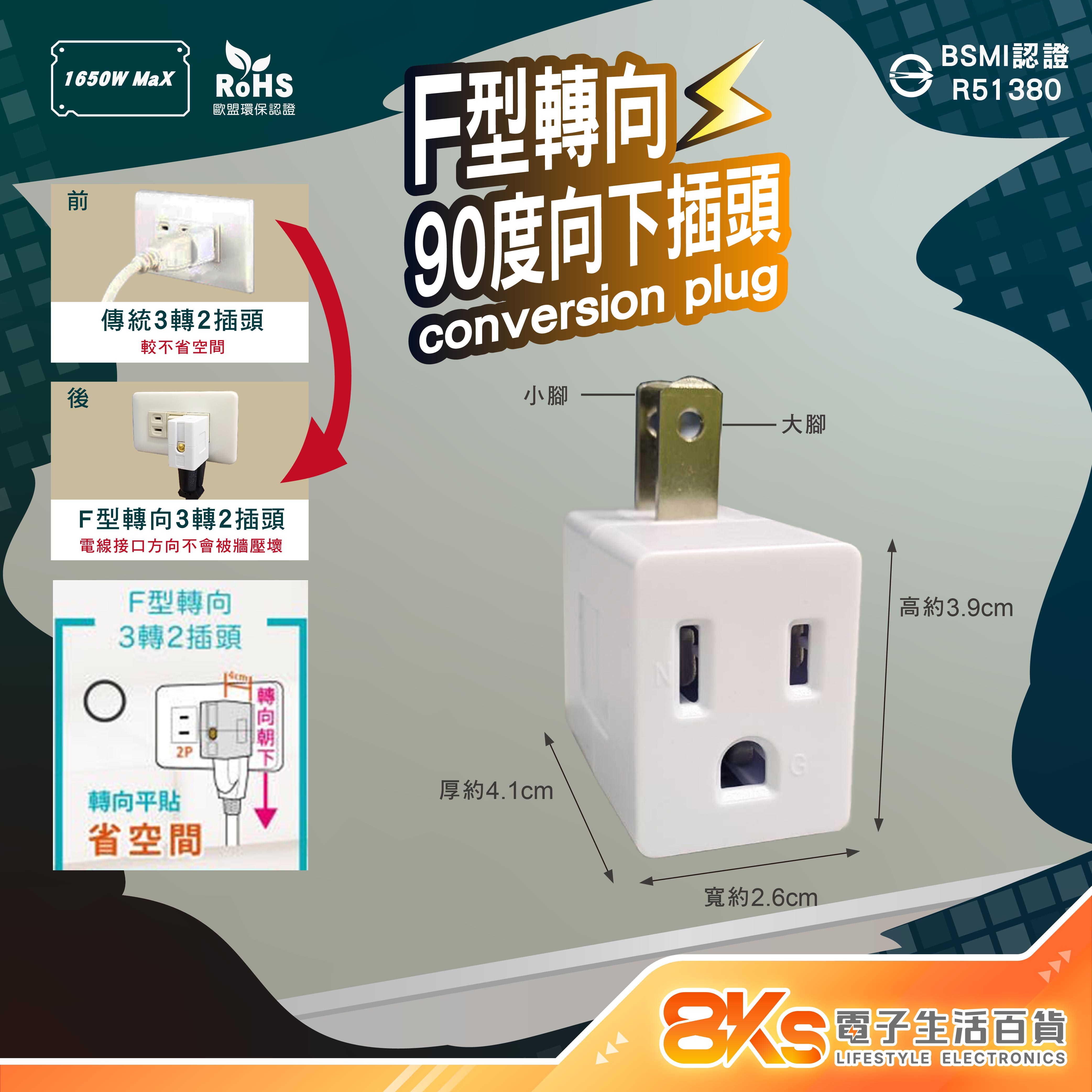 🟡F型轉向(90度)向下插頭