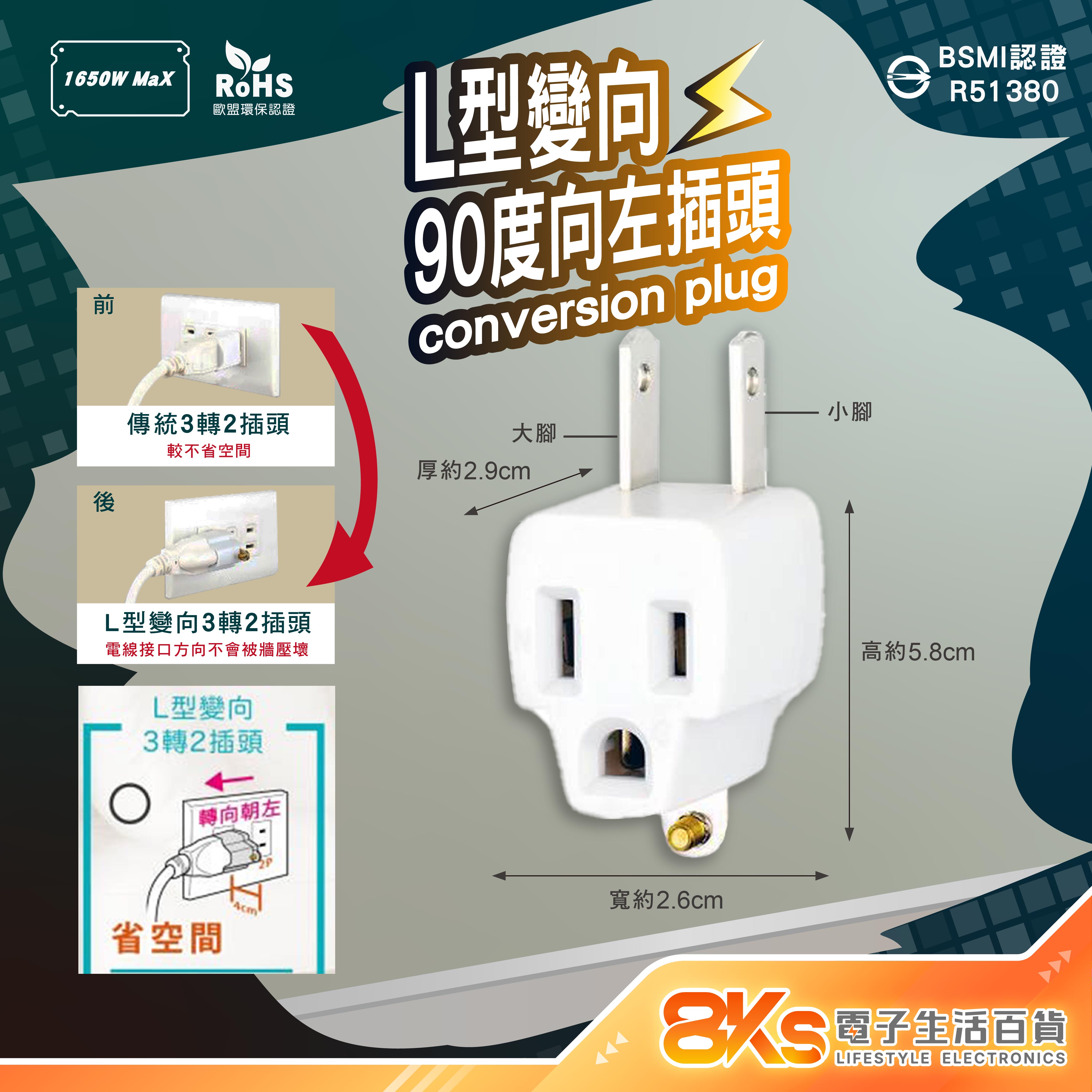 🟡L型變向(90度)向左插頭