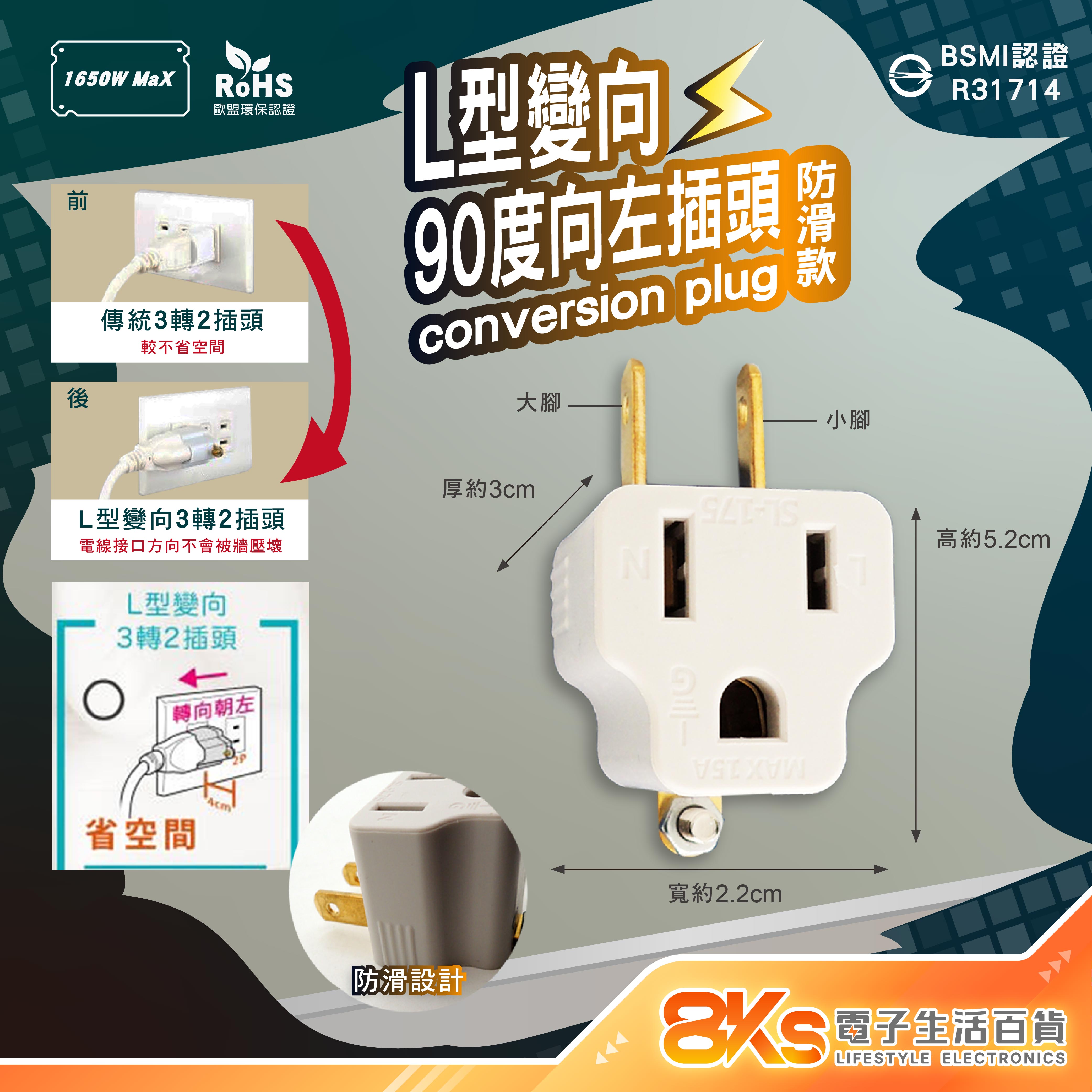 🟡90度L型向左插頭(防滑設計)
