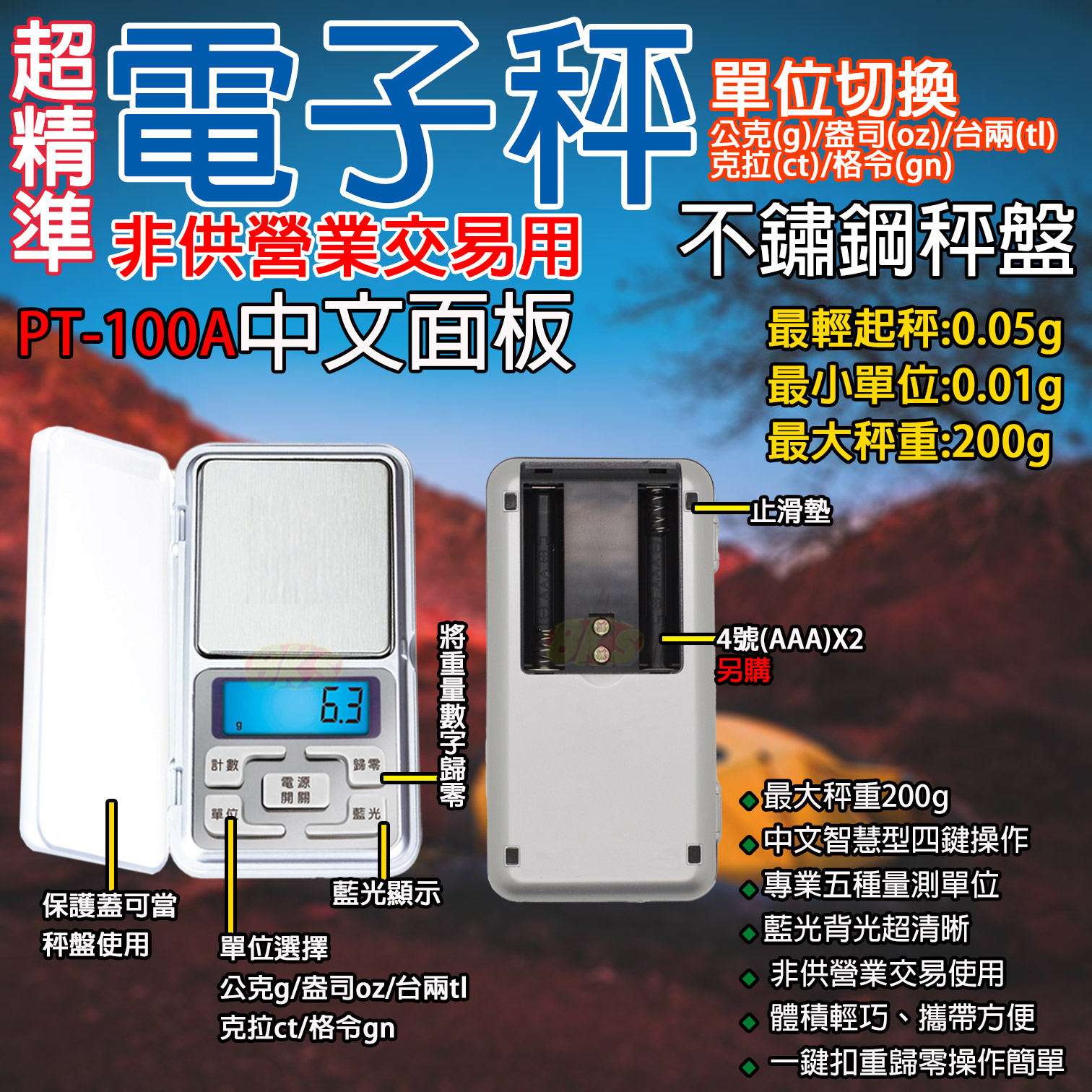 《PT-100A》最輕起秤0.5g/最大秤重1010g